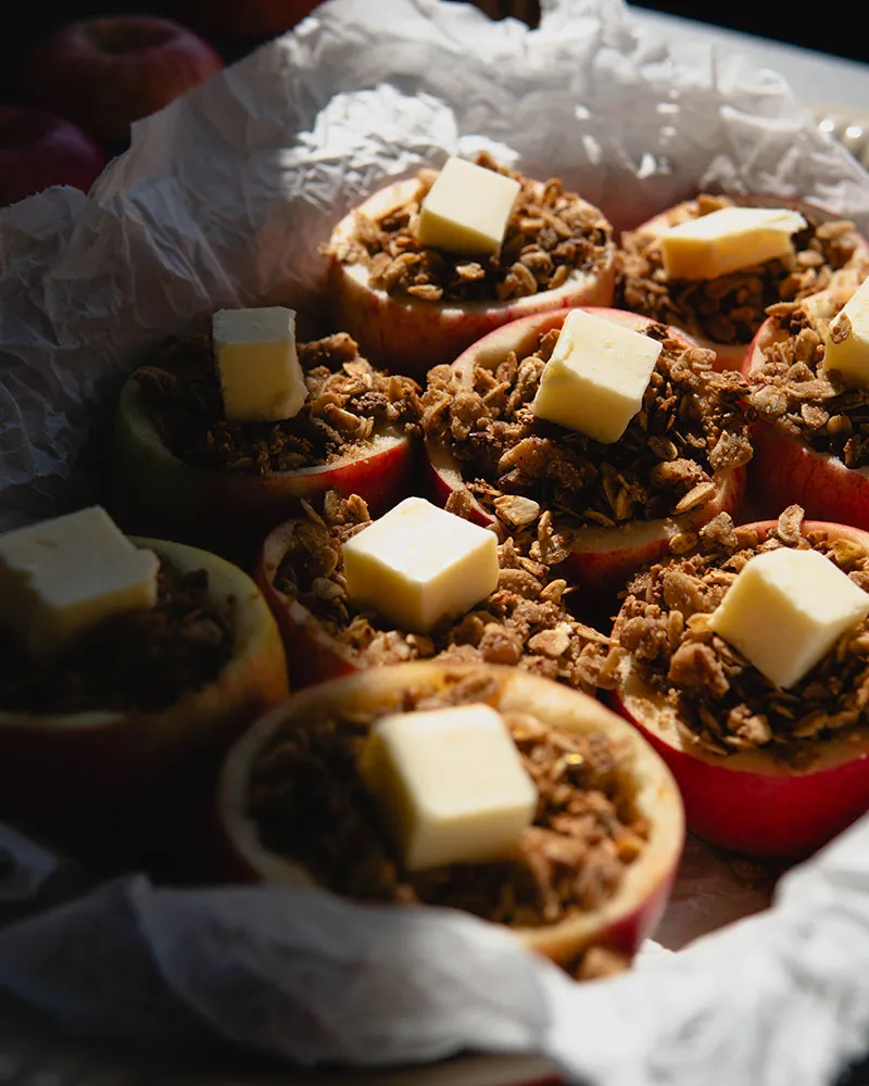Pommes rôties au sirop de cannabis et crumble au beurre noisette